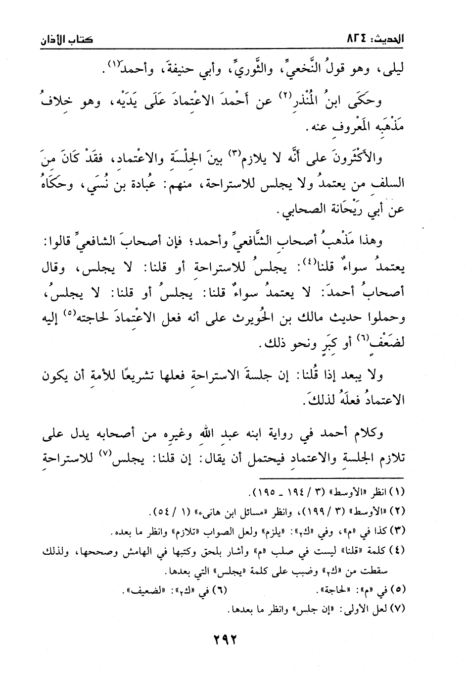 وهذا مذهب أصحاب الشافعي وأحمد؛ فان أصحاب الشافعي قالوا: يعتمد، سواء قلنا: يجلس للاستراحة أو قلنا لا يجلس. وقال أصحاب أحمد: لا يعتمد، سواء قلنا: يجلس، أو قلنا: لا يجلس، وحملوا حديث مالك بن الحويرث على أنه فعل الاعتماد لحاجته أليه: لضعف أو كبر ونحو ذلك.