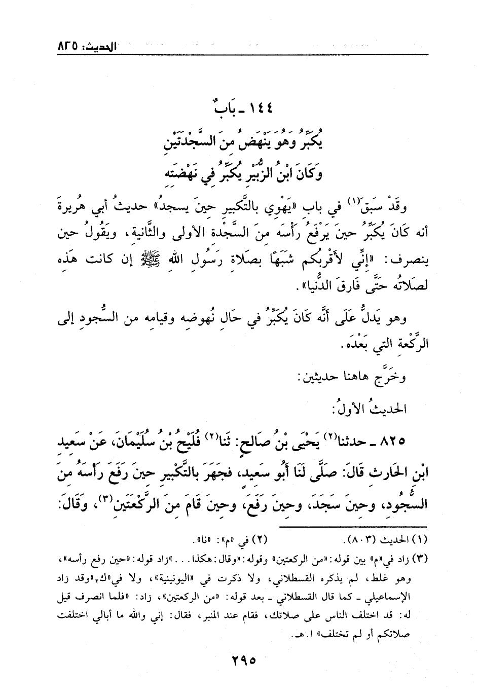 وقد سبق في ((باب: يهوي بالتكبير حين يسجد)) حديث أبي هريرة، أنه كان يكبر حين يرفع رأسه من السجدة الأولى والثانية، ويقول حين ينصرف: إني لأقربكم شبهاً بصلاة رسول الله - صَلَّى اللهُ عَلَيْهِ وَسَلَّمَ - إن كانت هذه لصلاته حتى فارق الدنيا.