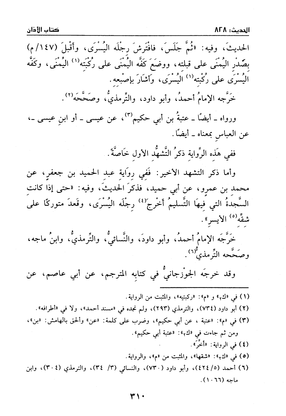 الحديث وفيه: حتى إذا كانت السجدة التي فيها التسليم أخرج رجله اليسرى وقعد متوركاً على شقه الأيسر.
