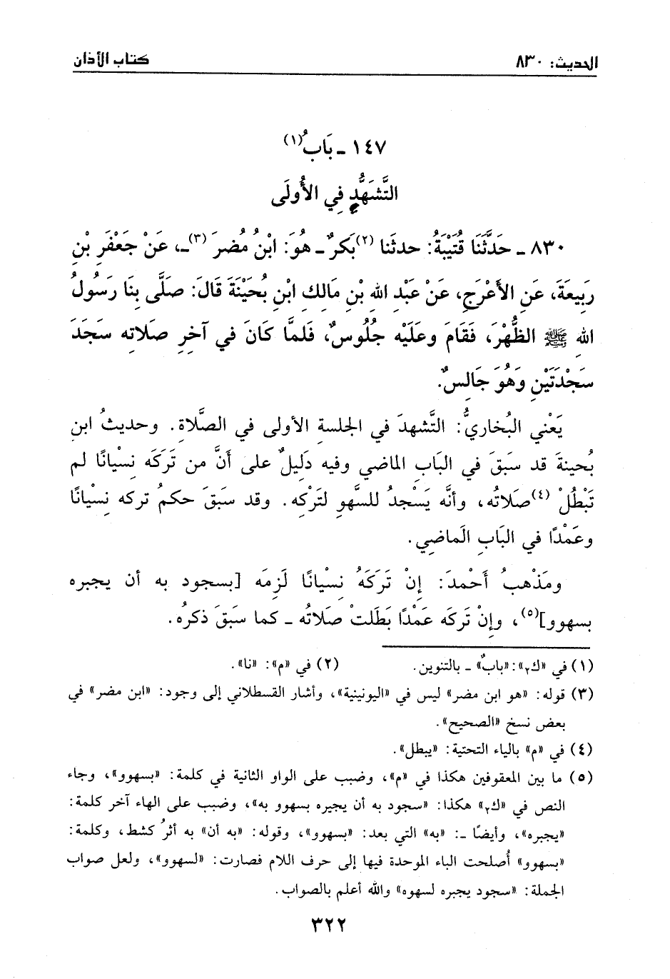 383 - حدثنا قتيبة: ثنا بكر - هو ابن مضر -، عن جعفر بن ربيعة، عن الأعرج، عن عبد الله بن مالك بن بحينة، قال: صلى بنا رسول الله - صَلَّى اللهُ عَلَيْهِ وَسَلَّمَ - الظهر، فقام وعليه جلوس، فلما كان في آخر صلاته سجد سجدتين وهو جالسٌ.
