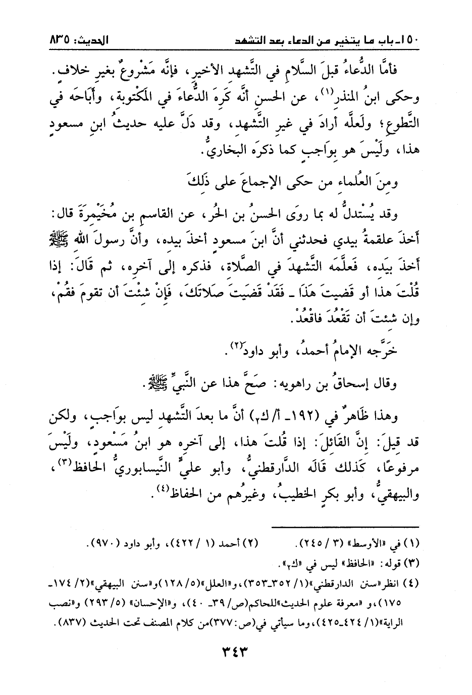((إذا قلت هذا)) إلى آخره، هو ابن مسعود، وليس مرفوعاً –؛ كذلك قاله الدارقطني وأبو علي النيسابوري والبيهقي وأبو بكر الخطيب وغيرهم من الحفاظ.