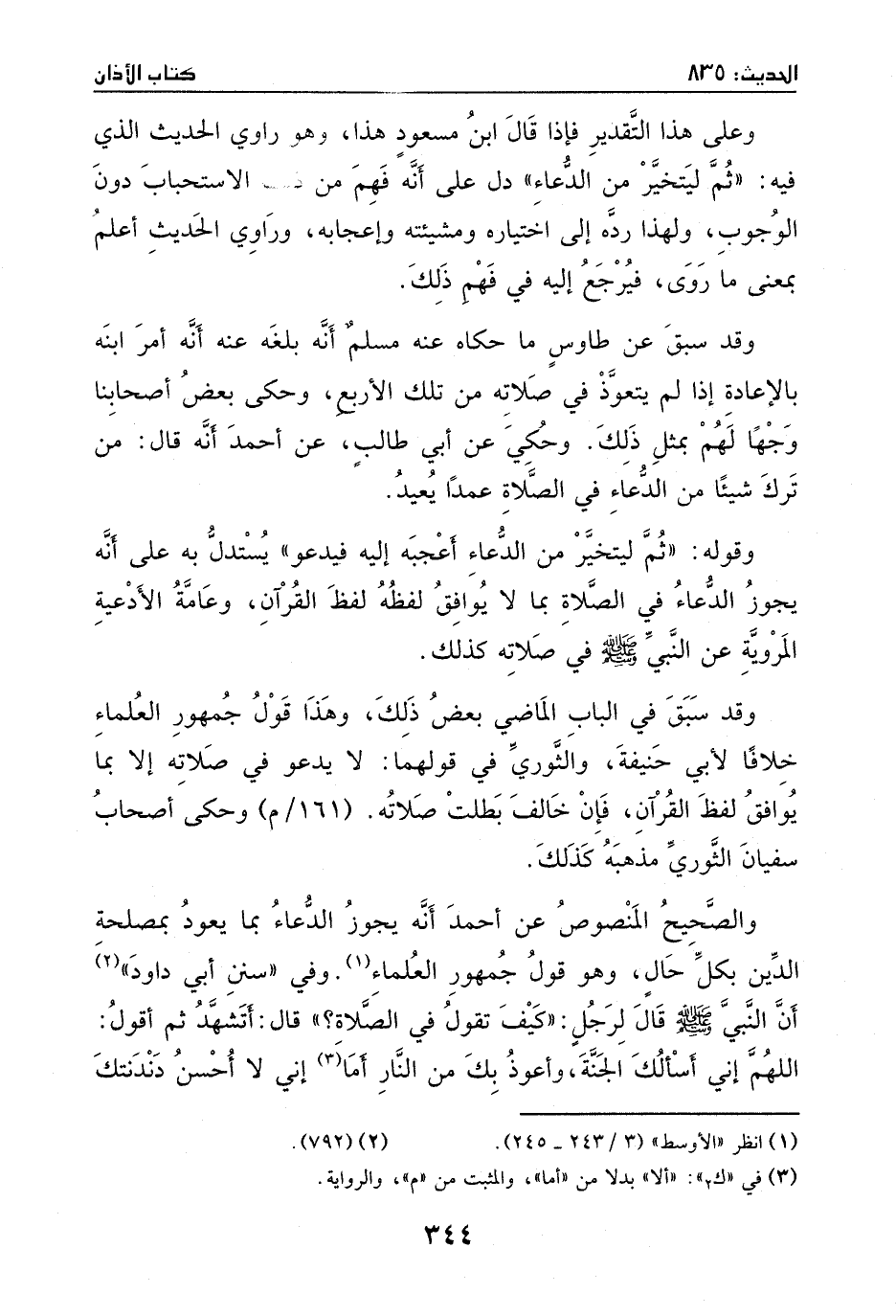 وهذا قول جمهور العلماء، خلافاً لأبي حنيفة والثوري في قولهما: لا يدعو في صلاته إلا بما يوافق لفظَ القرآن، فإن خالف بطلت صلاته.