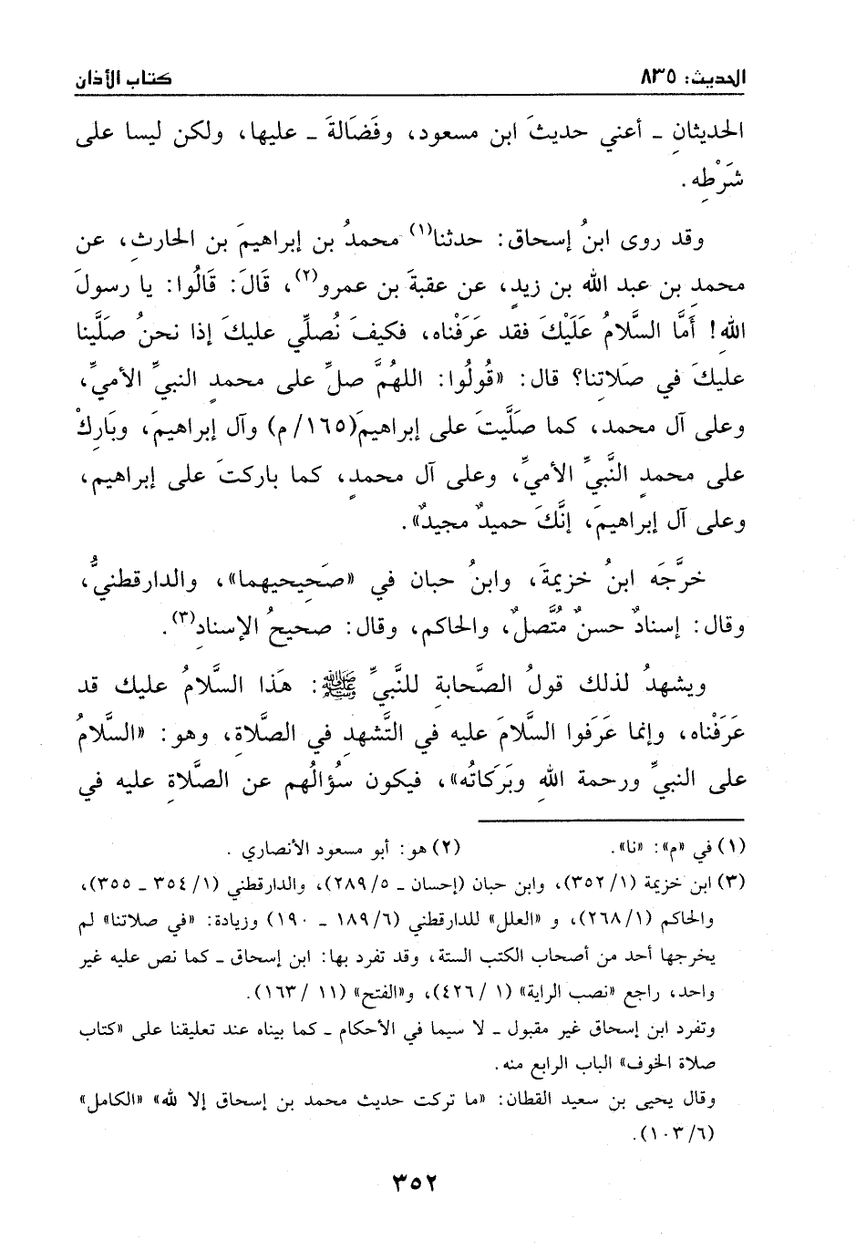 عبد الله بن زيدٍ، عن عقبة بن عمرو، قال: قالوا: يا رسول الله، أما السلام عليك فقد عرفناه، فكيف نصلي عليك إذا نحن صلينا عليك في صلاتنا؟ قالَ: ((قولوا: اللهم، صل على محمد النبي الأمي وعلى آل محمد، كما صليت على إبراهيم وآل إبراهيم، وبارك على محمد النبي الأمي وعلى آل محمد، كما باركت على إبراهيم وعلى آل إبراهيم، إنك حميدٌ مجيد)) .