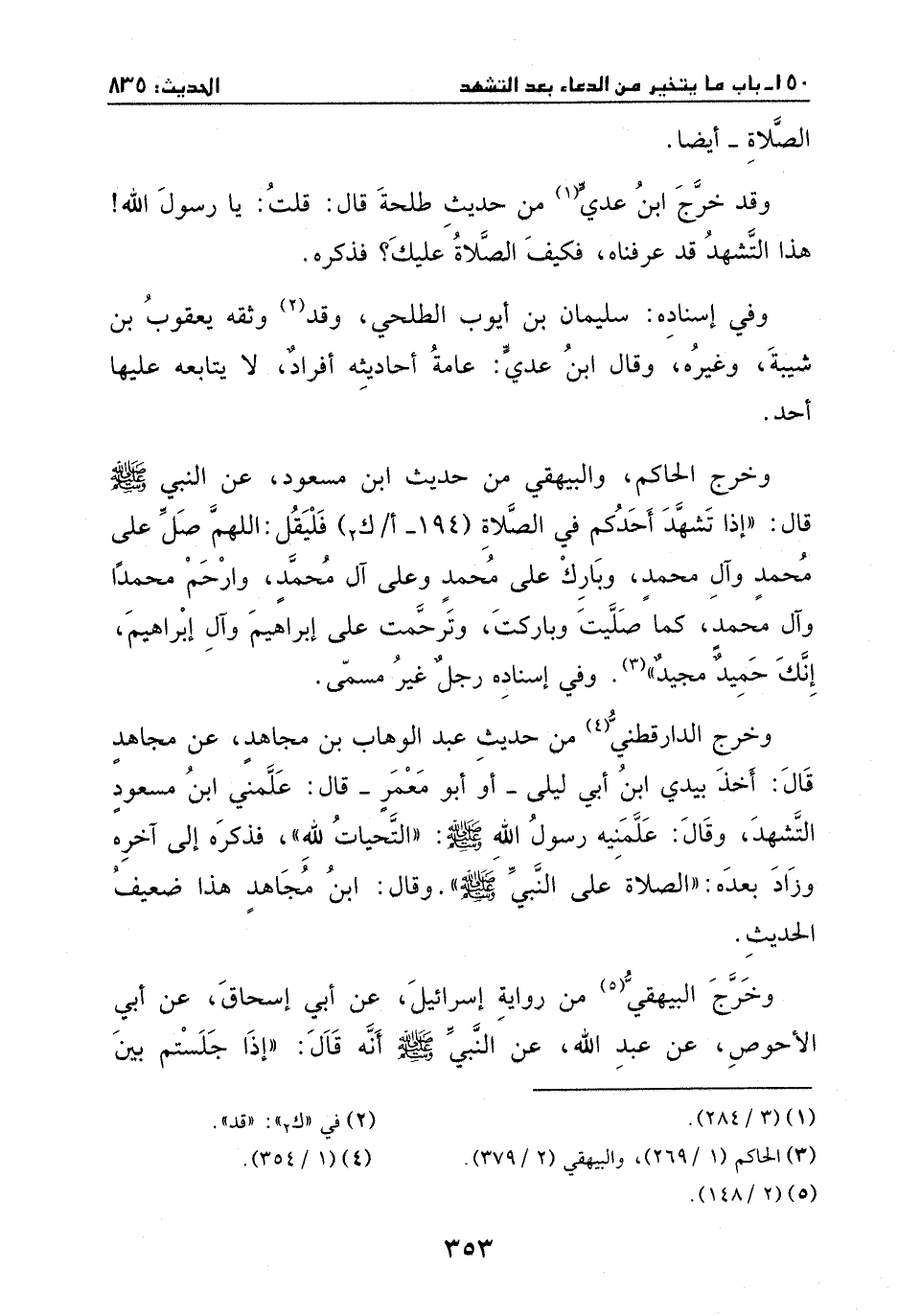 وقد خرّج ابن عدي من حديث طلحة، قال قلت: يا رسول الله، هذا التشهد قد عرفنا، فكيف الصلاة عليك –فذكره.