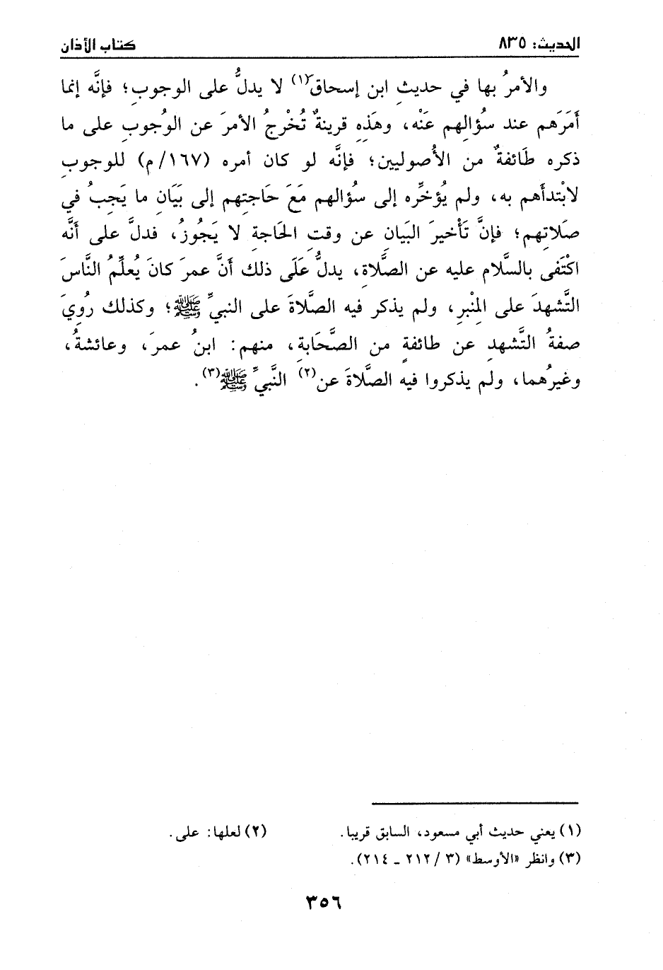والأمر بها في حديث ابن إسحاق لا يدل على الوجوب؛ فإنه إنما أمرهم عندَ سؤالهم عنه، وهذه قرينة تخرج الأمر عن الوجوب، على ما ذكره طائفة من الأصوليين؛ فإنه لو كان أمره للوجوب لا بتدأهم به، ولم يؤخره إلى سؤالهم، مع حاجتهم إلى بيان ما يجب في صلاتهم؛ فإن تأخير البيان عن وقت الحاجة لا يجوز، فدل على أنه اكتفى بالسلام عليه عن الصلاة.