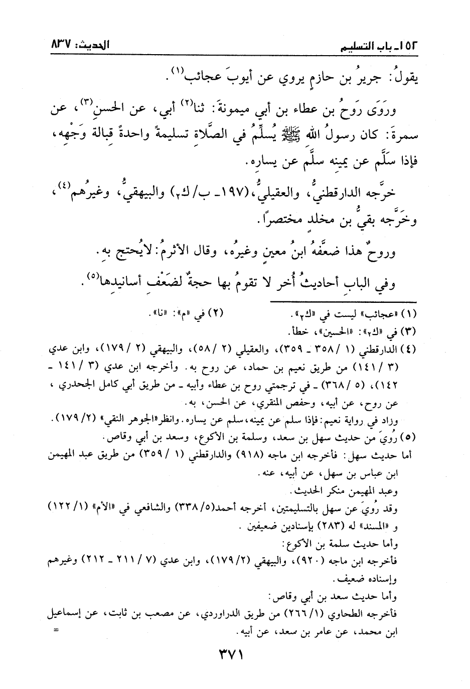 خَّرجه الدارقطني والعقيلي والبيهقي وغيرهم، وخَّرجه بقي بن مخلدٍ مختصراً.