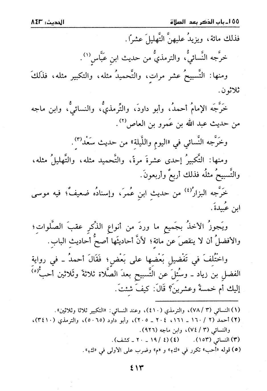 فقال أحمد – في رواية الفضل بن زيادٍ -، وسئل عن التسبيح بعد الصلاة ثلاثةً وثلاثين أحب إليك، أم خمسةً وعشرين؟ قال: كيف شئت.