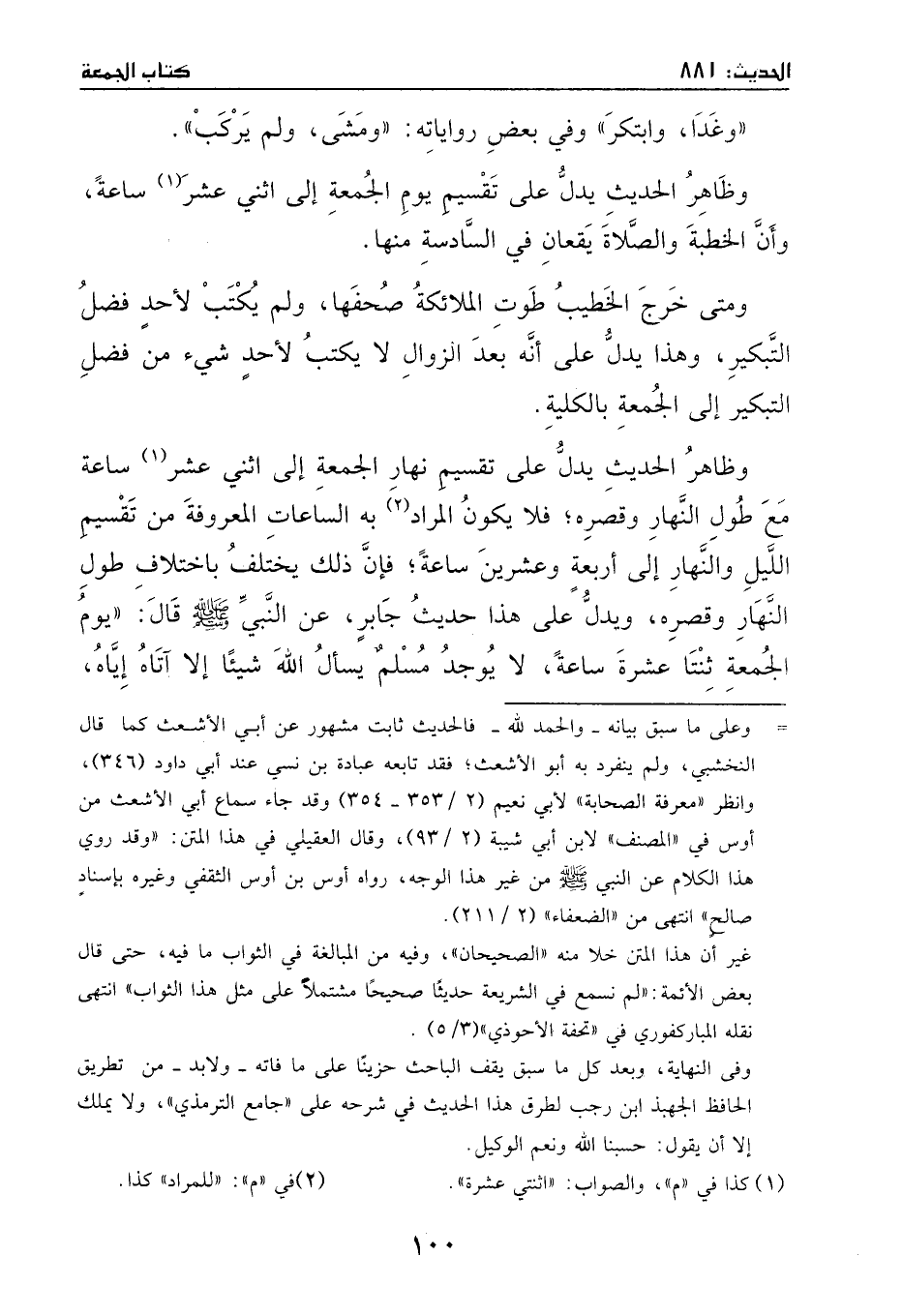 وظاهر الحديث: يدل على تقسيم نهار الجمعة إلى اثني عشر ساعةً مع طول النهار وقصره، فلا يكون المراد به الساعات المعروفة من تقسيم الليل والنهار إلى أربعة وعشرين ساعة؛ فإن ذَلِكَ يختلف باختلاف طول النهار وقصره.