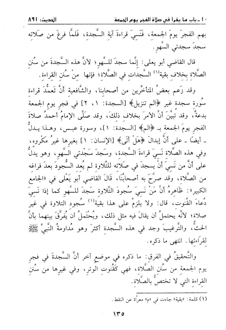 وقدصلى الإمام أحمد صلاة الفجر يوم الجمعة بـ {آلم} السجدة، وسورة