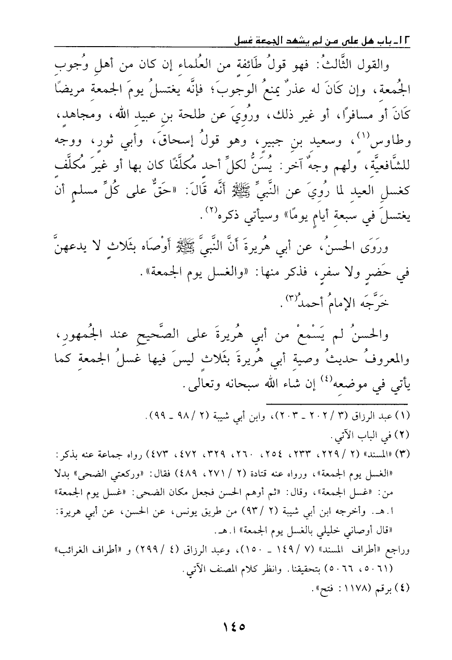 والمعروف: حديث وصية أبي هريرة بثلاثٍ، ليس فيها: ((غسلٌ الجمعة)) ، كما يأتي في موضعه –إن شاء الله سبحانه وتعالى.