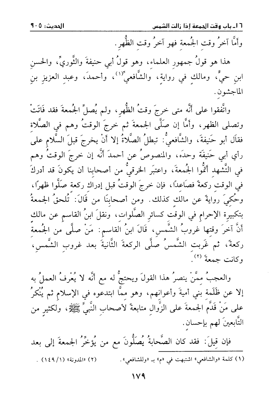 والعجب ممن ينصر هذا القول، ويحتج له، مع أنه لا يعرف العمل به إلاّ عن ظلمة بني أمية واعوانهم، وهو مما ابتدعوه في الإسلام، ثم ينكر على من قدم الجمعة على الزوال متابعة لأصحاب النبي - صَلَّى اللهُ عَلَيْهِ وَسَلَّمَ -، ولكثيرٍ من التابعين لهم بإحسان!