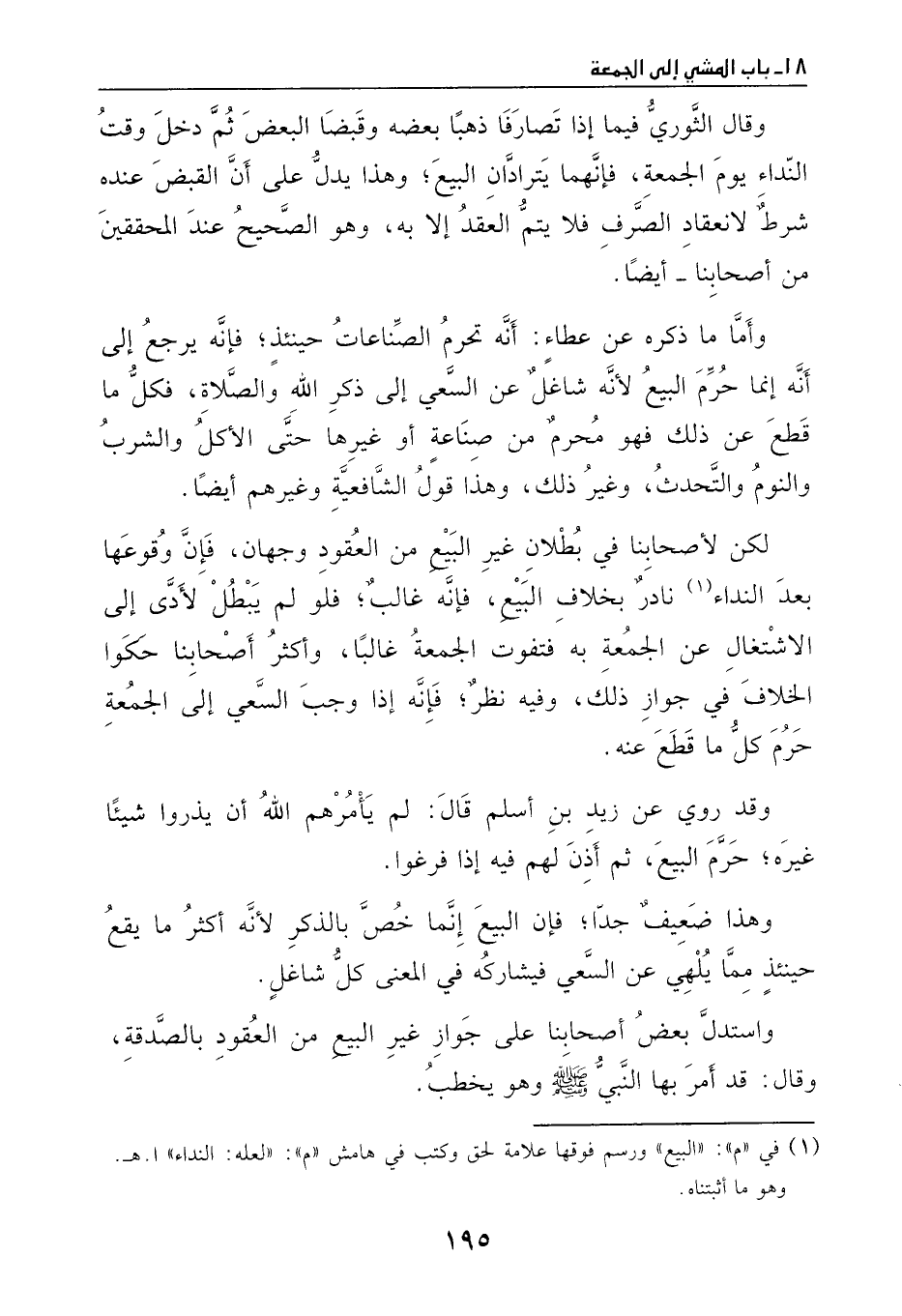وأكثر أصحابنا حكوا الخلاف في جواز ذلك، وفيه نظرٌ؛ فإنه إذا وجب السعي إلى الجمعة حرم كل ما قطع عنه.