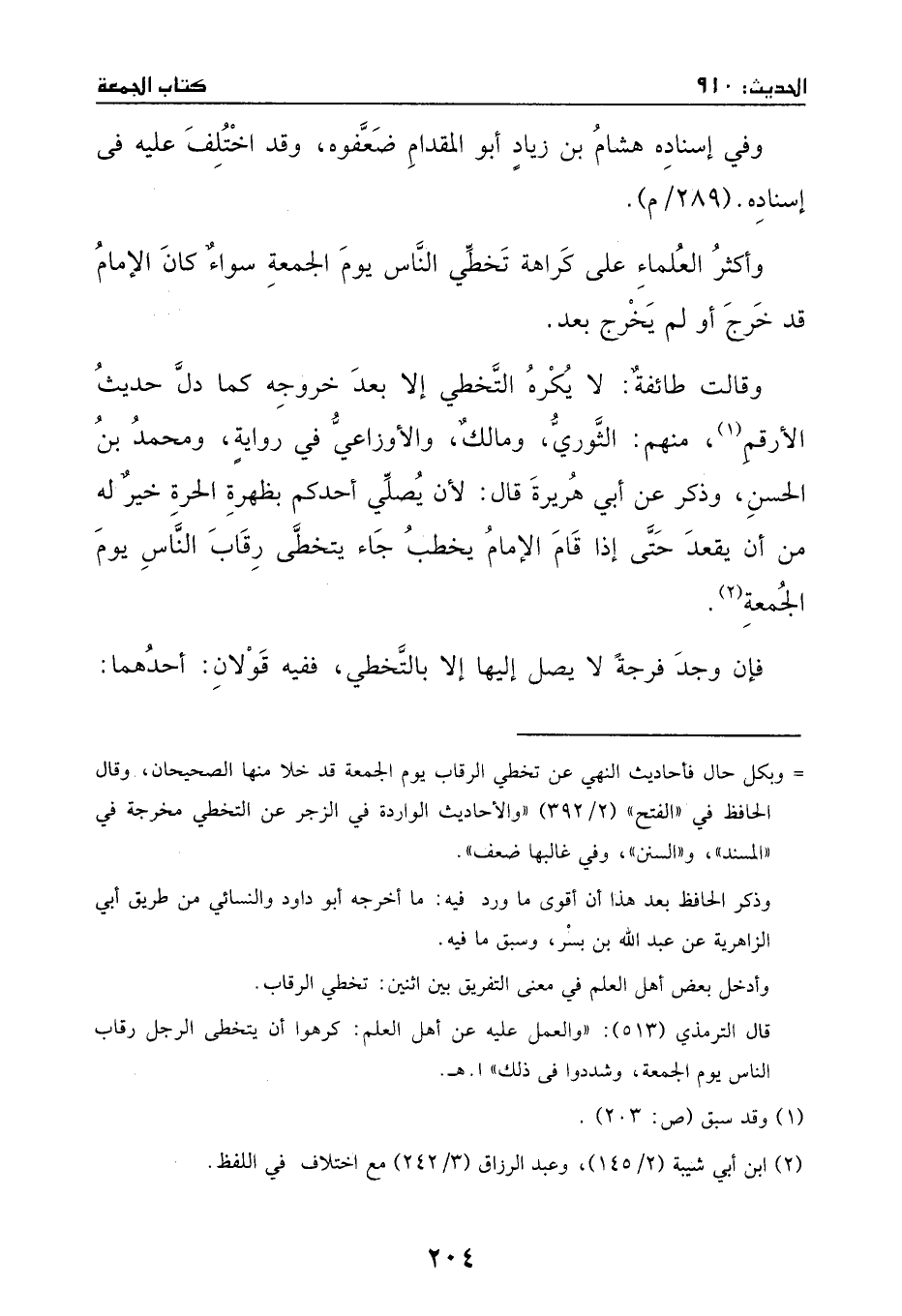 وقالت طائفةٌ: لا يكره التخطي إلا بعدَ خروجهِ، كما دل عليه حديث الأرقم، منهم: الثوريُ، ومالكٌ، والأوزاعي – في روايةٍ -، ومحمد بن الحسنِ.