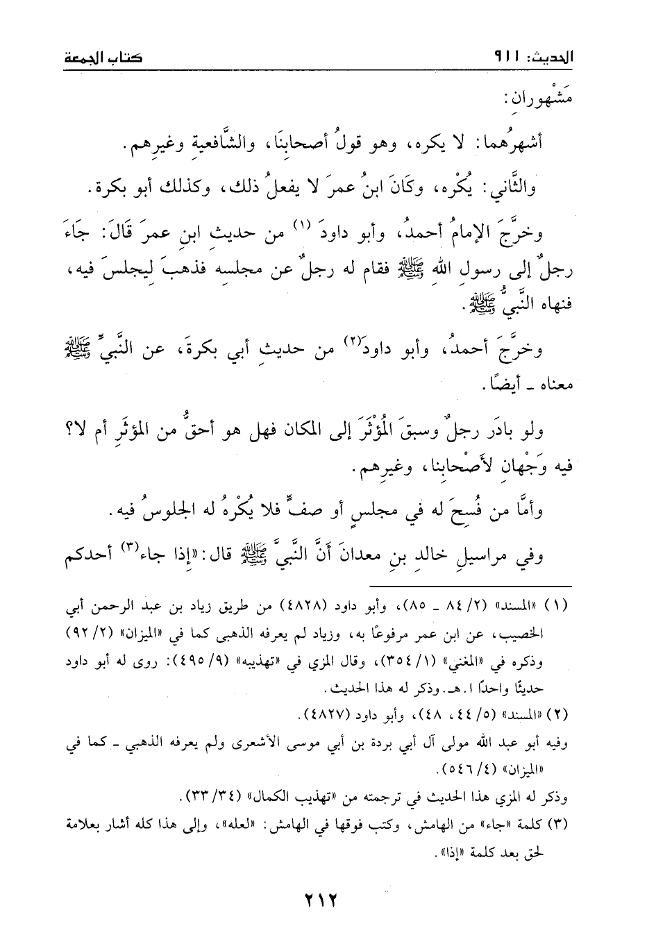 رسول الله - صَلَّى اللهُ عَلَيْهِ وَسَلَّمَ -، فقام له رجل من مجلسه، فذهب ليجلس فيه، فنهاه النبي - صَلَّى اللهُ عَلَيْهِ وَسَلَّمَ -.