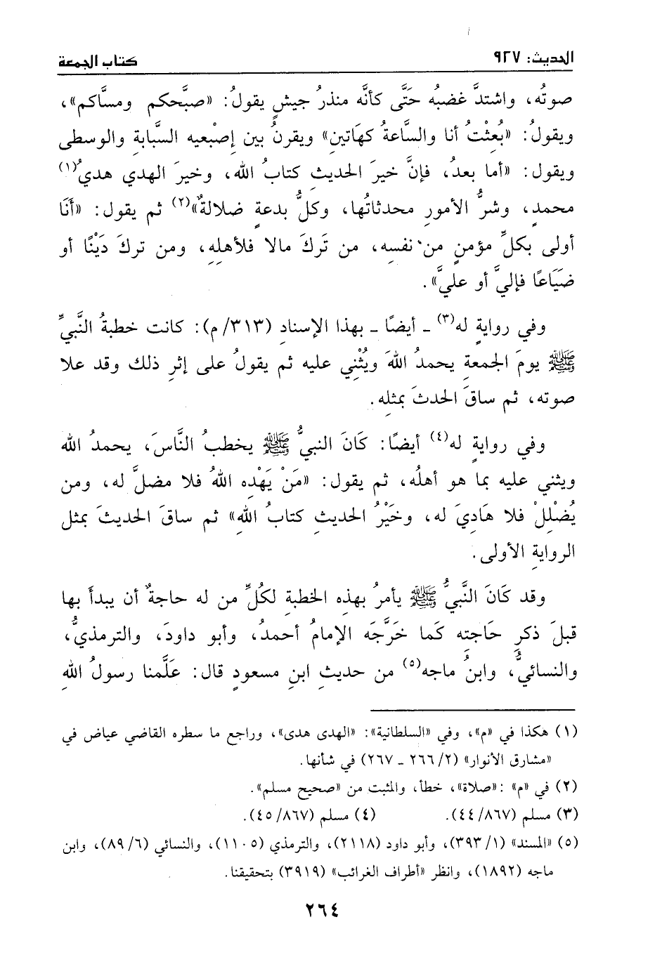 كهاتين)) ، ويقرن بين أصبعيه: السبابة والوسطى، ويقول: ((أما بعد؛ فإن خيرٌ الحديث كتاب الله، وخير الهدي هدي محمد، وشر الأمور محدثاتها، وكل بدعة