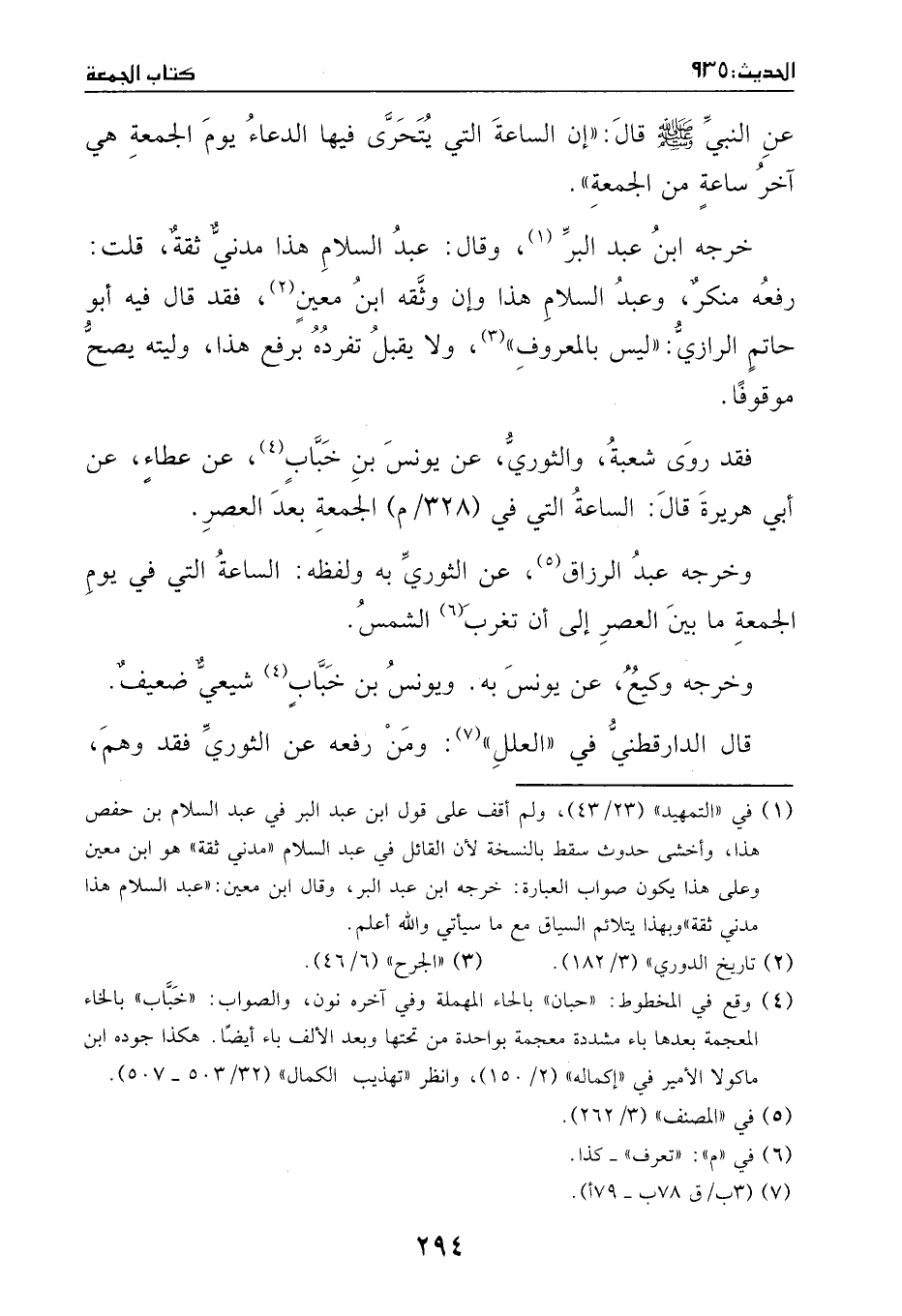 وخرّجه عبد الرزاق، عن الثوري، به، ولفظه: الساعة التي تقوم في يوم الجمعة ما بين العصر إلى أن تغرب الشمس.