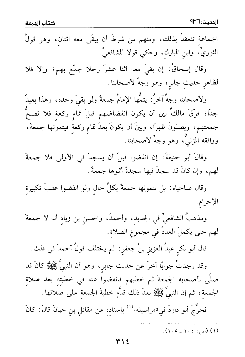 وقال إسحاق: أن بقي معه اثنا عشر رجلاً جمع بهم وإلاّ فلا؛ لظاهر حديث جابر.