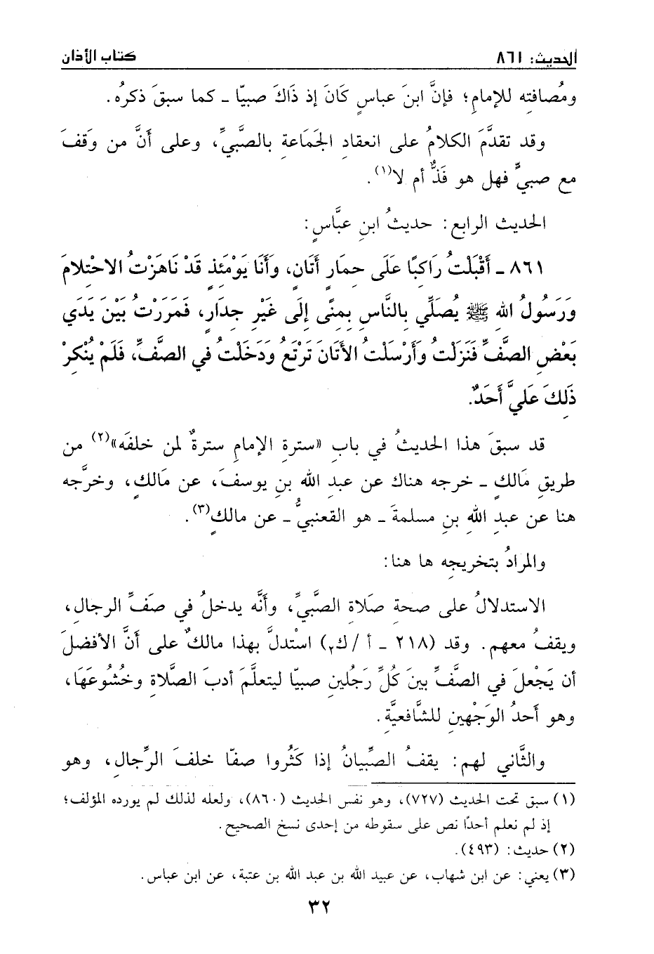 ومصافته للإمام، فإن ابن عباس كان إذ ذاك صبياً، كما سبق ذكره.