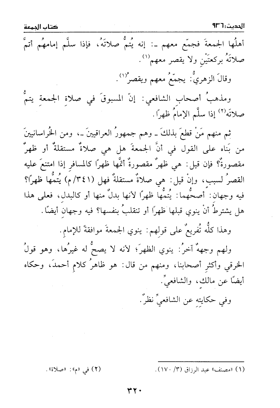 ثم منهم من قطع بذلك، وهم جمهور العراقيين، ومن الخراسانين من بناه على القول في أن الجمعة: هل هي صلاة مستقلة أو ظهر مقصورة.