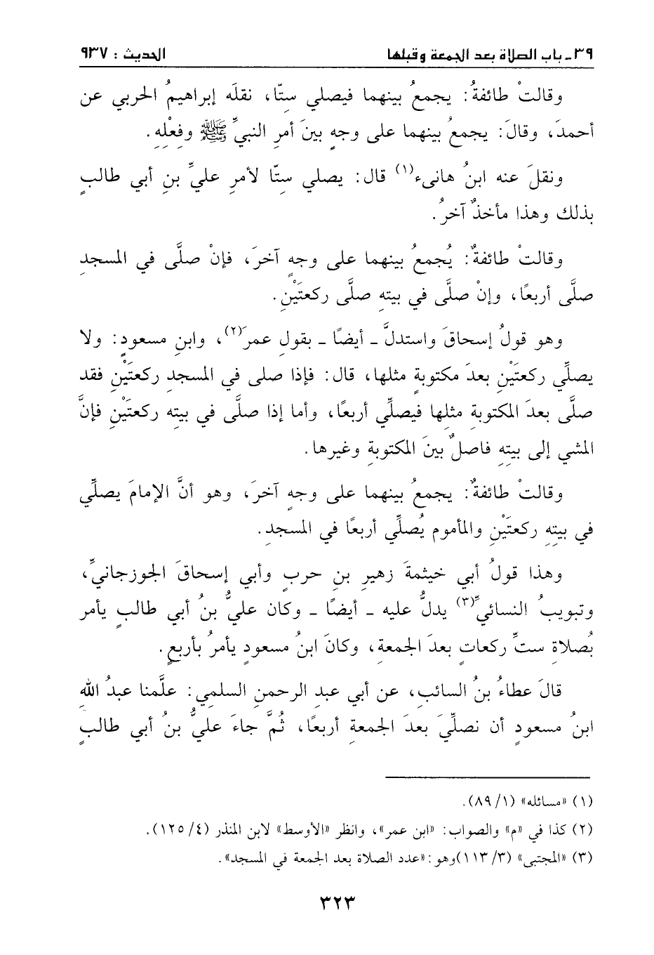 ركعتين، والمأموم يصلي أربعا في المسجد، وهذا قول أبي خيثمة زهير بن حرب وأبي إسحاق الجوزجاني. وتبويب النسائي يدل عليه - أيضا.