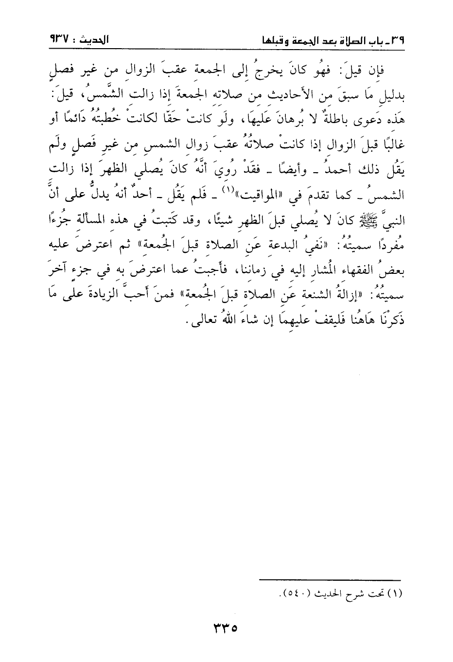 وقد كتبت في هذه المسألة جزءا مفردا، سميته: " نفي البدعة عن الصلاة قبل الجمعة "، ثم اعترض عليه بعض الفقهاء المشار إليه في زماننا، فأجبت عما اعترض به في جزء آخر، سميته: " إزالة الشنعة عن الصلاة قبل الجمعة "، فمن أحب الزيادة على ما ذكرناه ها هنا، فليقف عليهما - إن شاء الله تعالى.