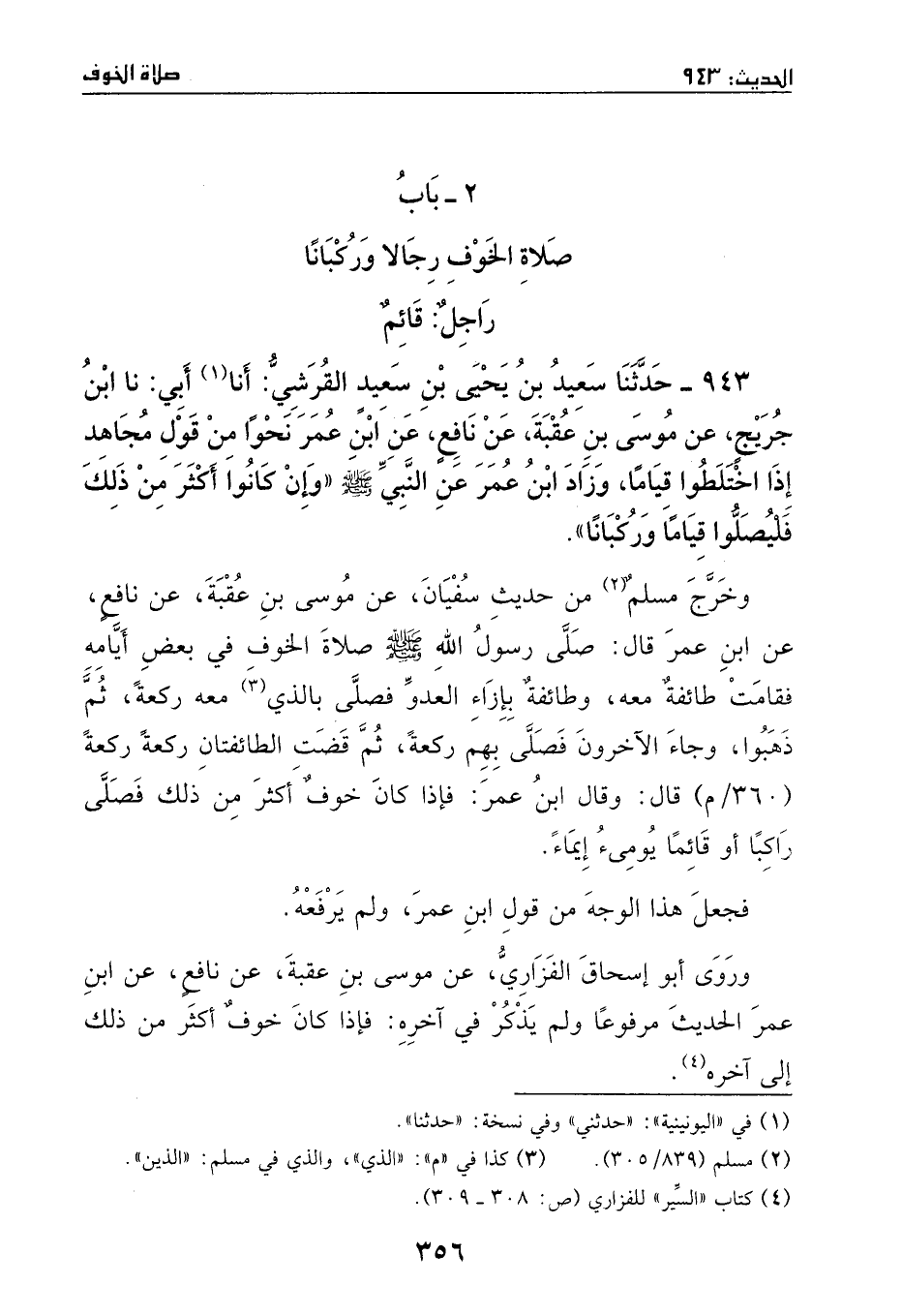 943 – حدثنا سعيد بن يحيى بن سعيد القرشي: أنا أبي: نا ابن جريج، عن موسى بن عقبة، عن نافع، عن ابن عمر - نحوا من قول مجاهد: إذا اختلطوا قياما.