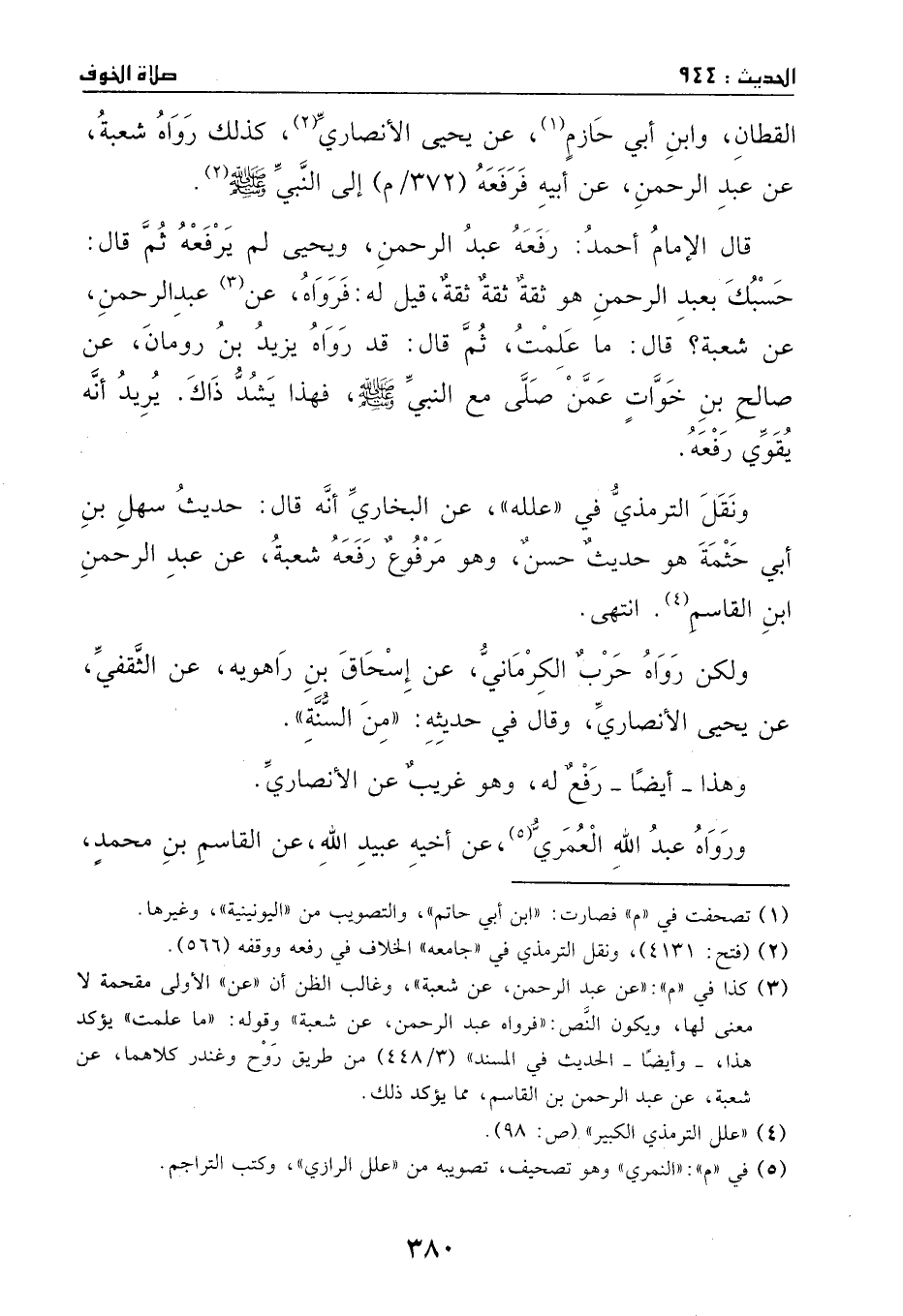 قال الإمام أحمد: رفعه عبد الرحمن، ويحيى لم يرفعه. ثم قالَ: حسبك