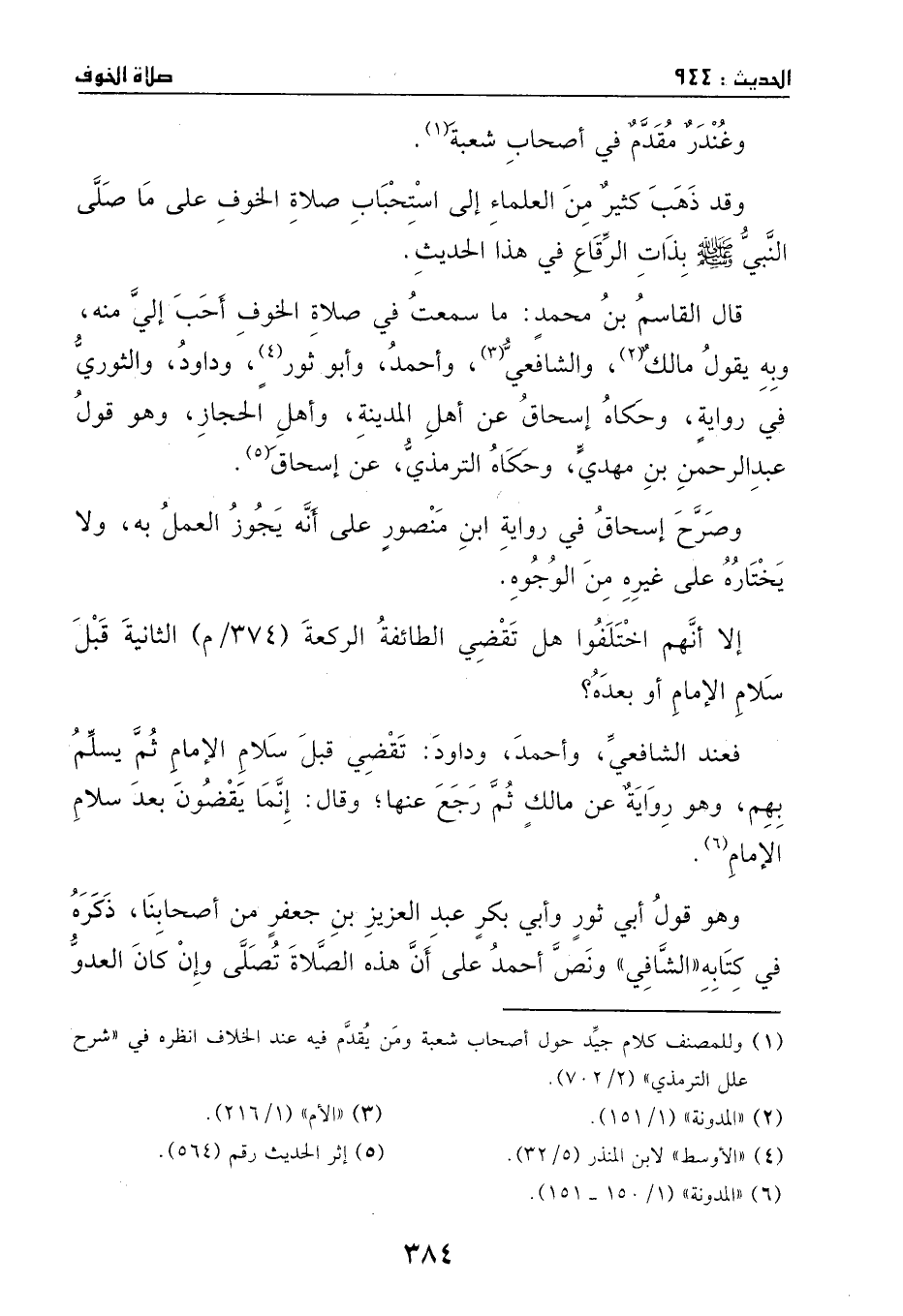 وقد ذهب كثير من العلماء إلى استحباب صلاة الخوف على ما صلى النبي - صَلَّى اللهُ عَلَيْهِ وَسَلَّمَ - بذات الرقاع في هذا الحديث.