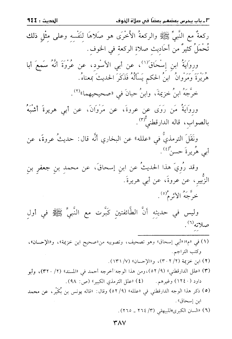 ركعة مع النبي - صَلَّى اللهُ عَلَيْهِ وَسَلَّمَ - والركعة الأخرى هو صلاها لنفسه، وعلى مثل ذلك تحمل كثير من أحاديث صلاة الركعة في الخوف.