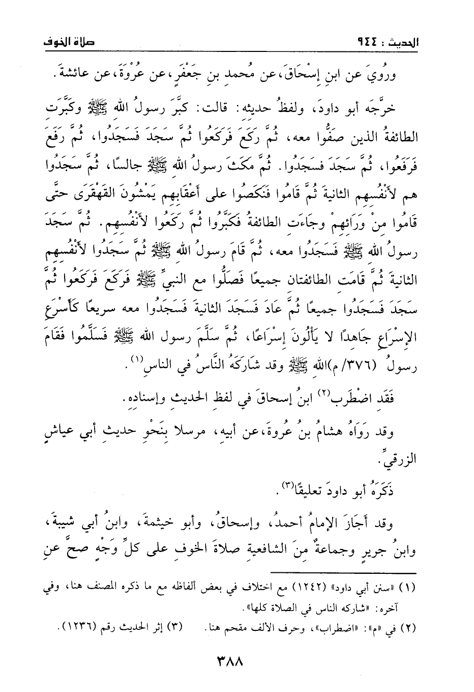 وقد أجاز الإمام أحمد وإسحاق وأبو خيثمة وابن أبي شيبة وابن جرير وجماعة من الشافعية صلاة الخوف على كل وجه صح عن