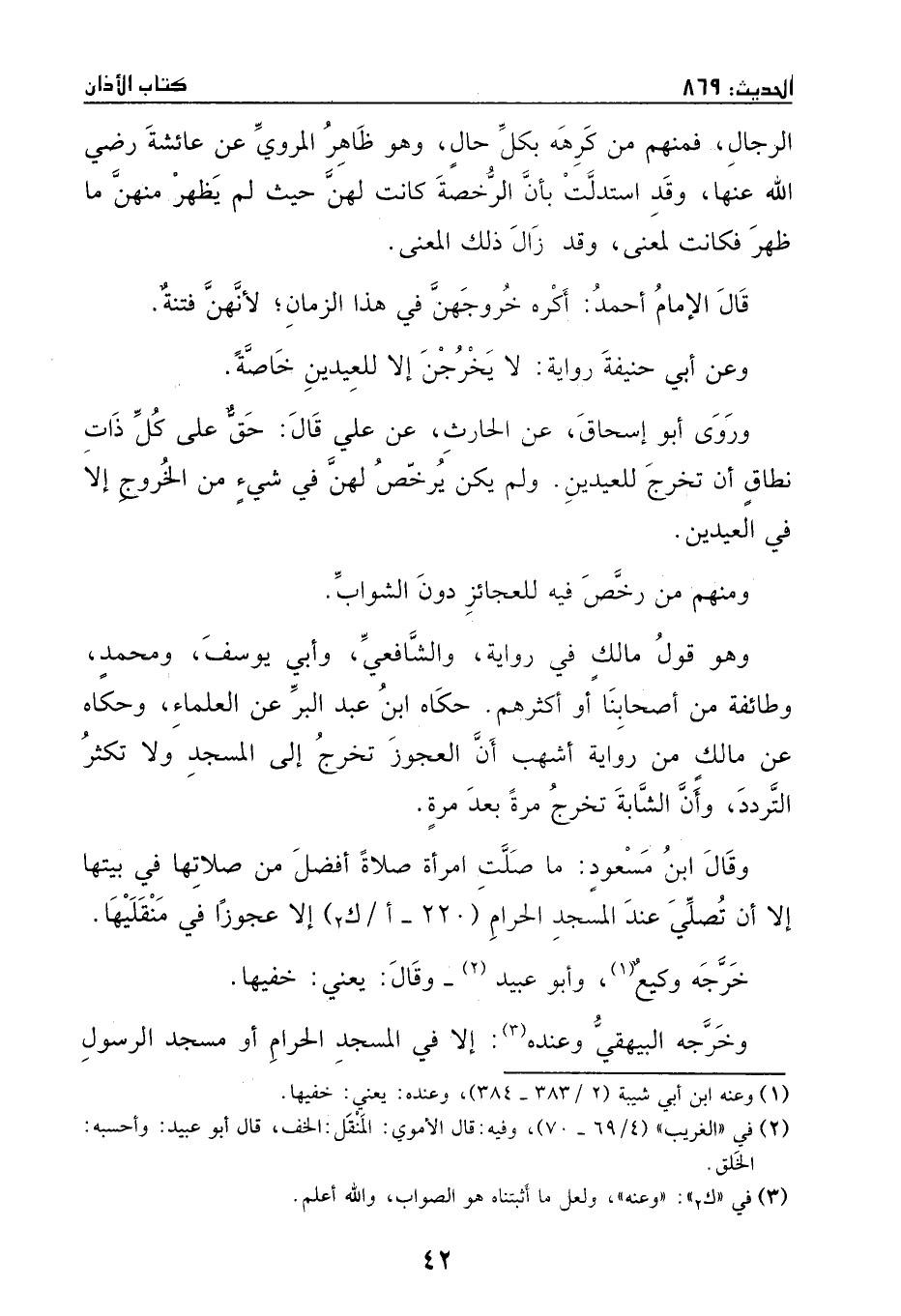 قال الإمام أحمد: أكره خروجهن في الزمان؛ لأنهن فتنتةٌ.