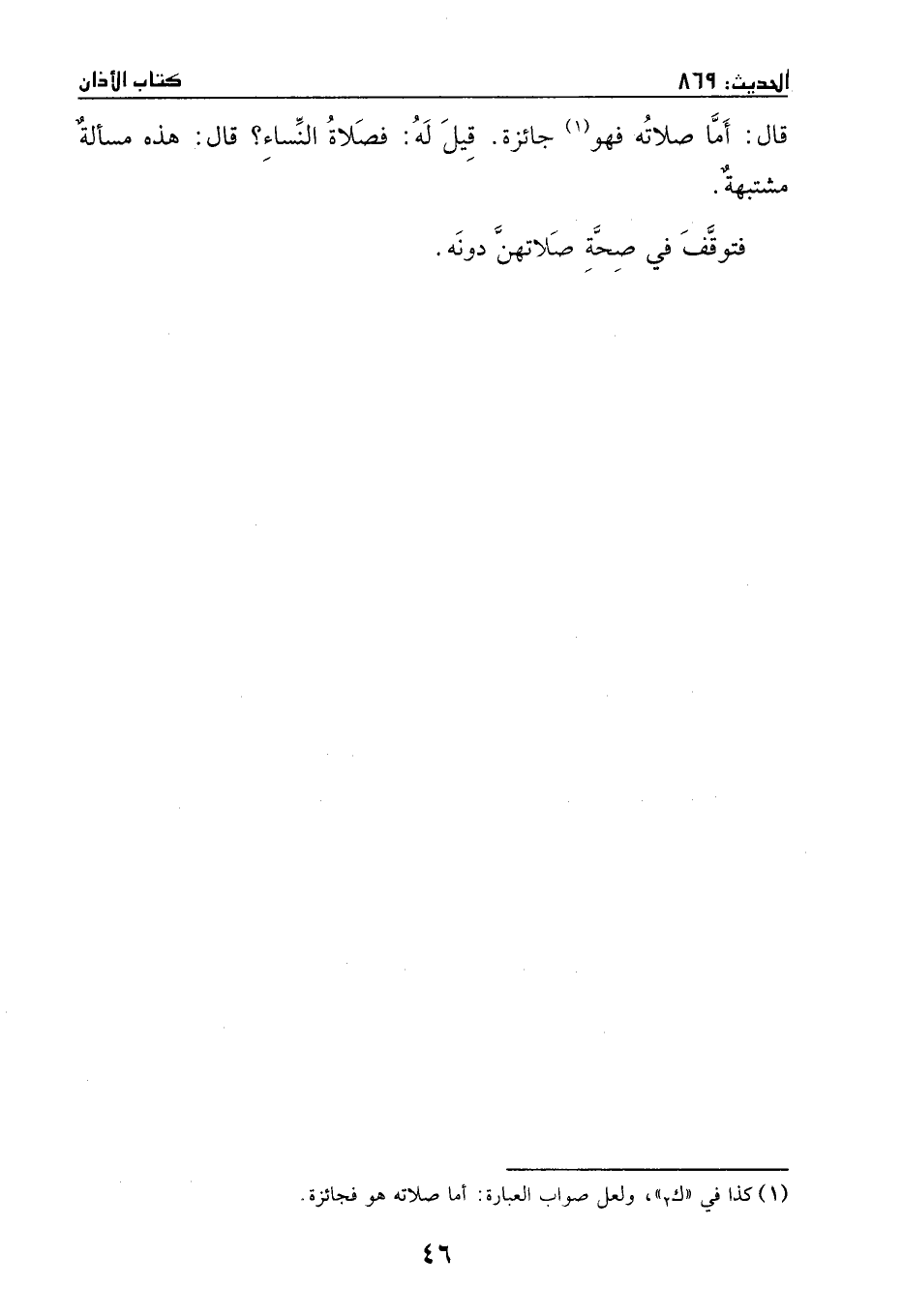 قال: أما صلاته فهي جائزة قيل له: فصلاة النساء؟ هذه مسألةٌ مشتيهةٌ.