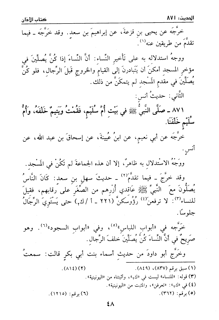 ووجه استدلاله به على تأخير النساء: أن النساء إذا كن يصلين في مؤخر المسجد أمكن أن يتبادرن إلى القيام والخروج قبل الرجال فلو كن يصلين في مقدم المسجد لم يتمكن من ذلك.