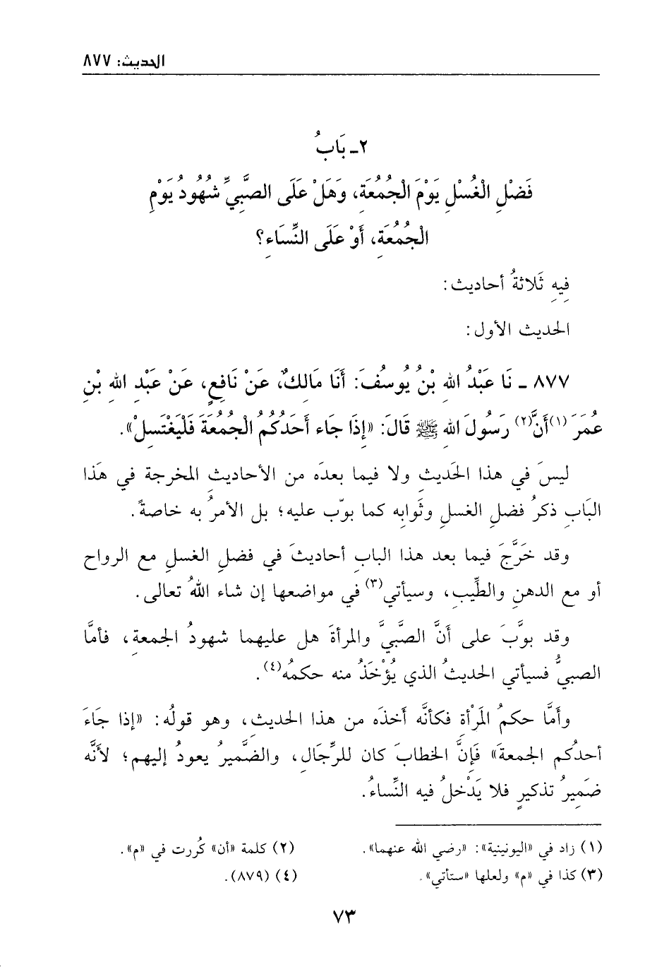ثنا عبد الله بن يوسف: أنا مالكٌ، عن نافعٍ، عن عبد الله بن عمر، أن رسول الله - صَلَّى اللهُ عَلَيْهِ وَسَلَّمَ - قال: ((إذا جاء أحدكم الجمعة فليغتسل)) .