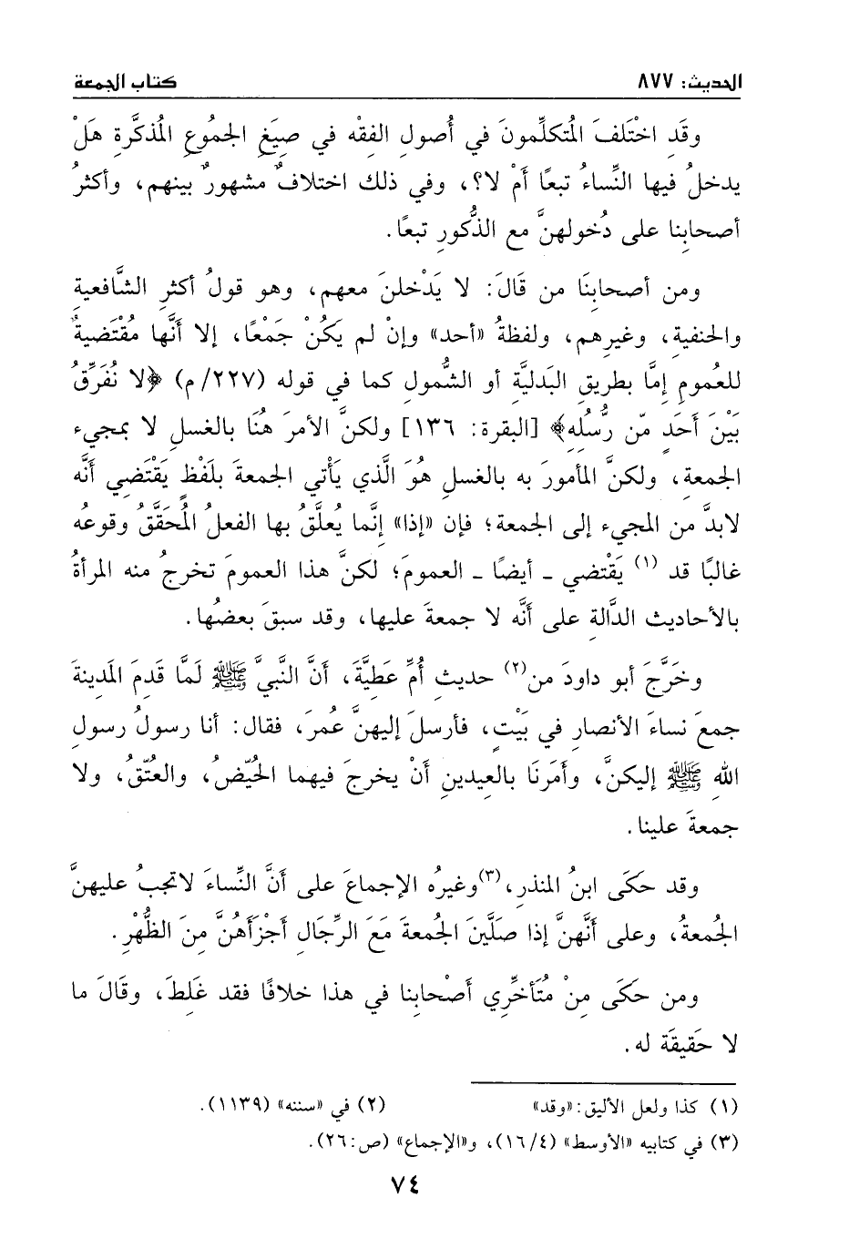 وقد اختلف المتكلمون في أصول الفقه في صيغ الجموع المذكرة: هل يدخل فيها النساء تبعاً، أم لا؟ وفي ذلك اختلاف مشهورٌ بينهم.