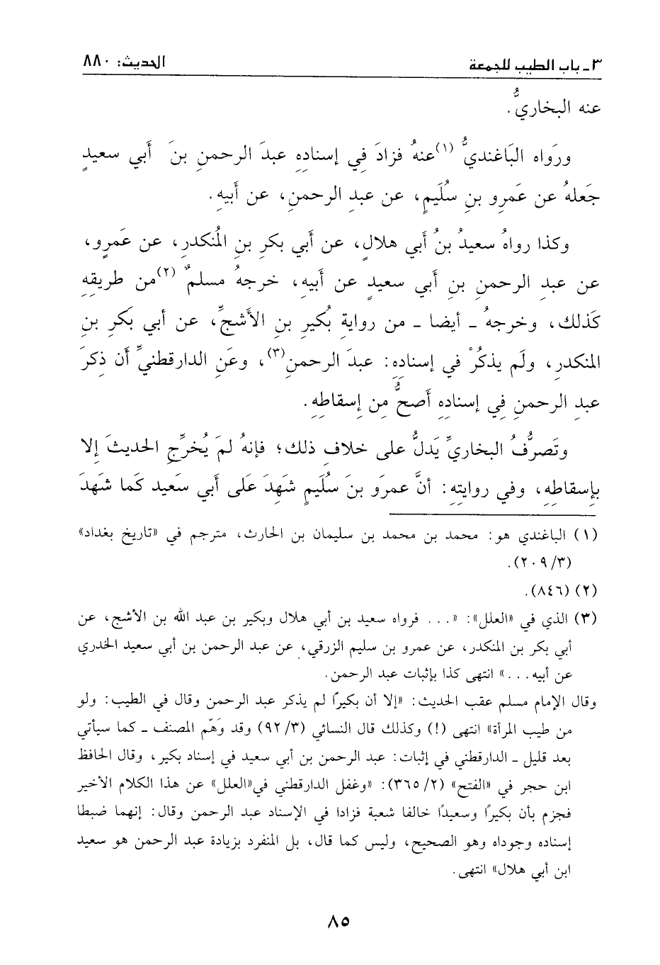 وعن الدارقطني: أنه ذكر ((عبد الرحمن)) في إسناده أصح من إسقاطه.