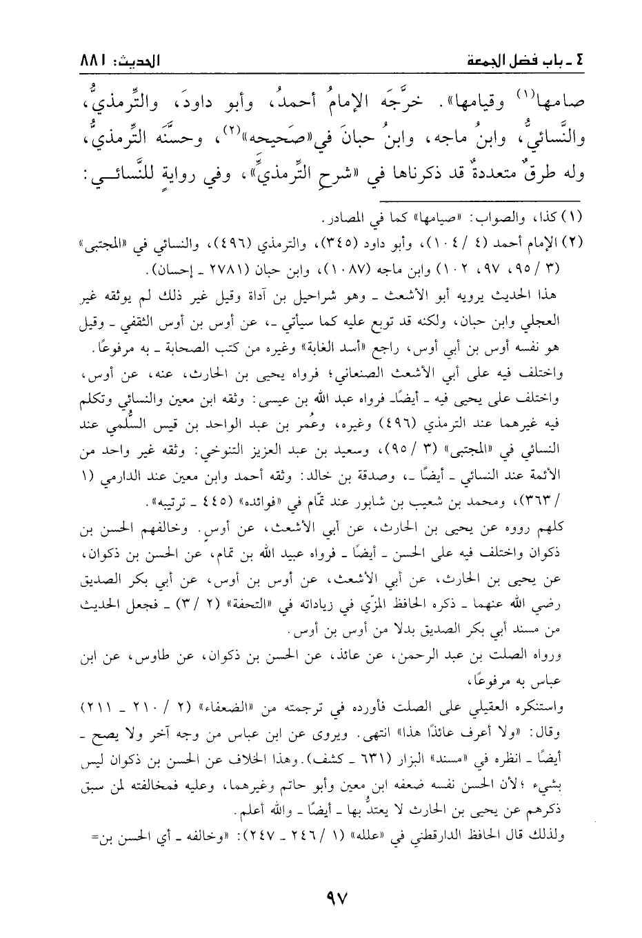 خرَّجه الإمام أحمد وأبو داود والترمذي والنسائي وابن ماجه وابن حبان في