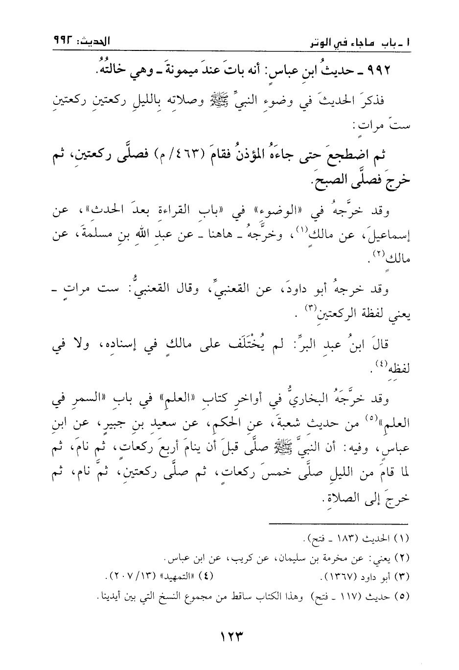 992 - حديث: ابن عباس، أنه بات عند ميمونة وهي خالته.