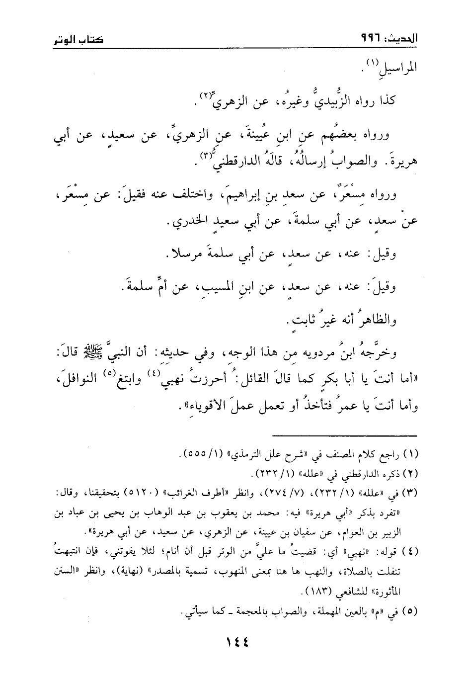 والصواب إرساله -: قاله الدارقطني.