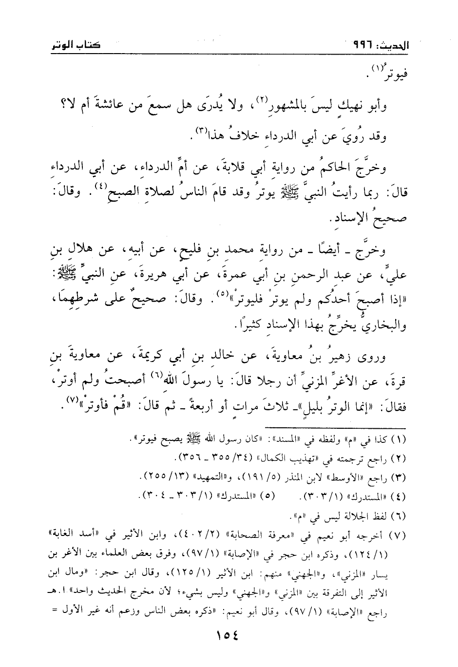 وخرّج الحاكم من رواية أبي قلابة، عن أم الدرداء، عن أبي الدرداء، قال: ربما رأيت النبي - صَلَّى اللهُ عَلَيْهِ وَسَلَّمَ - يوتر، وقد قام الناس لصلاة الصبح.