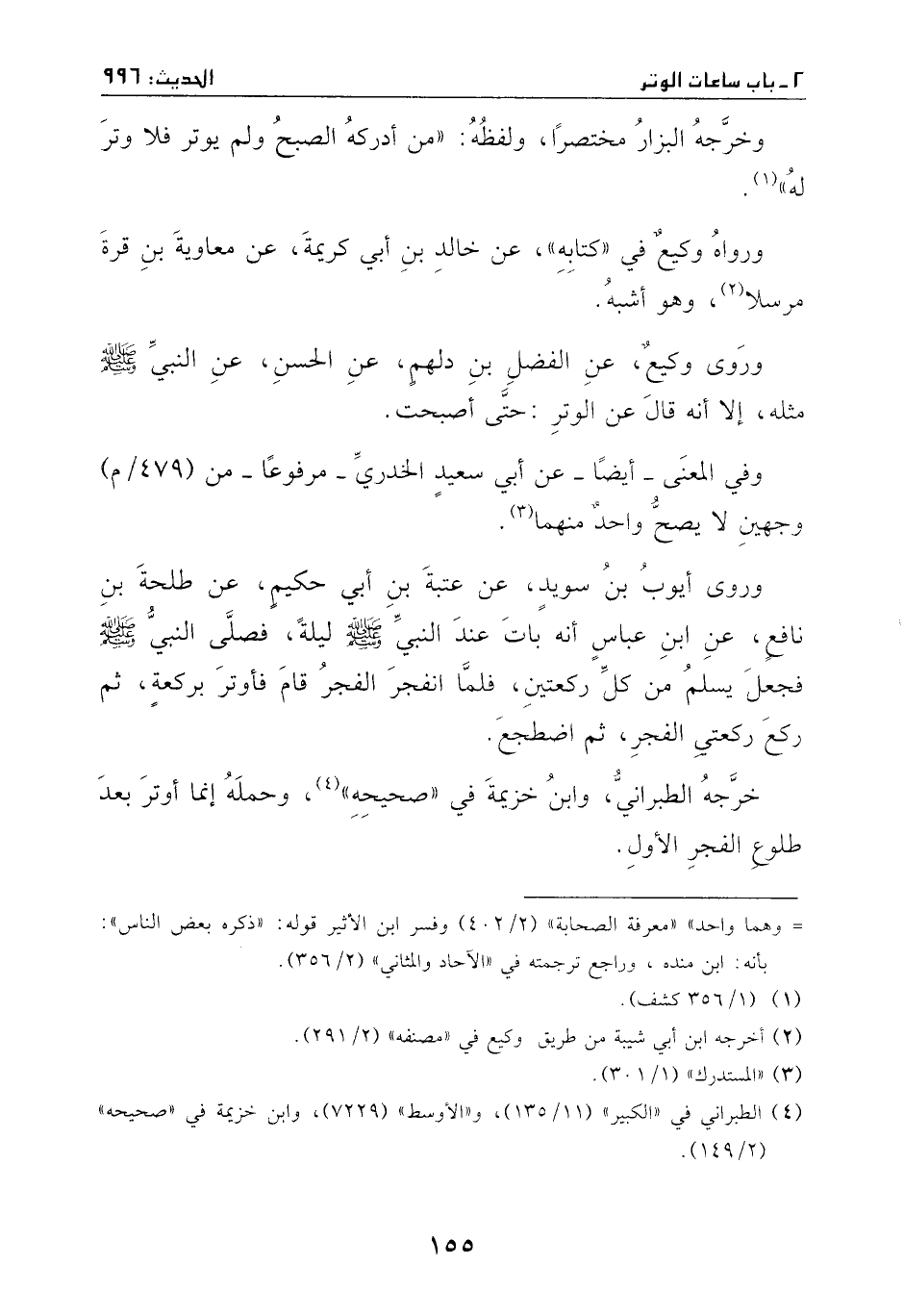 وخرجه البزار – مختصرا، ولفظه: ((من أدركه الصبح ولم يوتر فلا وتر له)) .