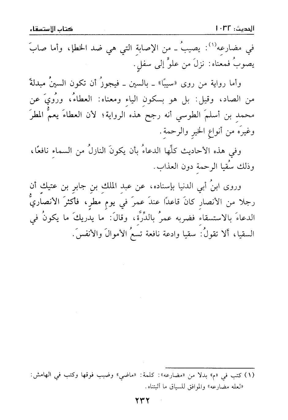 وروي عن محمد بن أسلم الطوسي، أنه رجح هذه الرواية؛ لأن العطاء يعم المطر وغيره من أنواع الخير والرحمة وفي هذه الأحاديث كلها: الدعاء ببأن يكون النازل من السماء نافعا، وذلك سقيا الرحمة، دون العذاب.