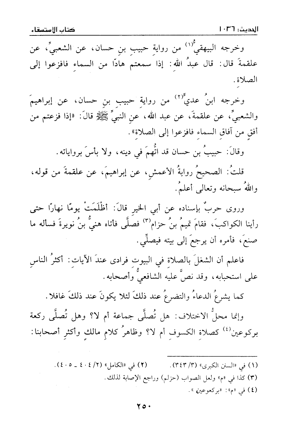 واعلم؛ أن الشغل بالصلاة في البيوت فرادى عند الآيات أكثر الناس
