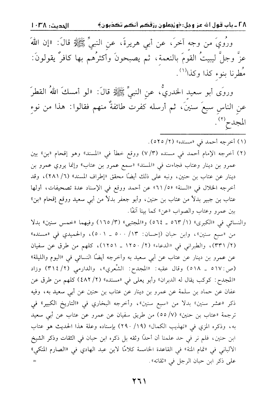 وروى أبو سعيد الخدري، عن النبي [- صَلَّى اللهُ عَلَيْهِ وَسَلَّمَ -] ، قال: " لو أمسك الله القطر عن