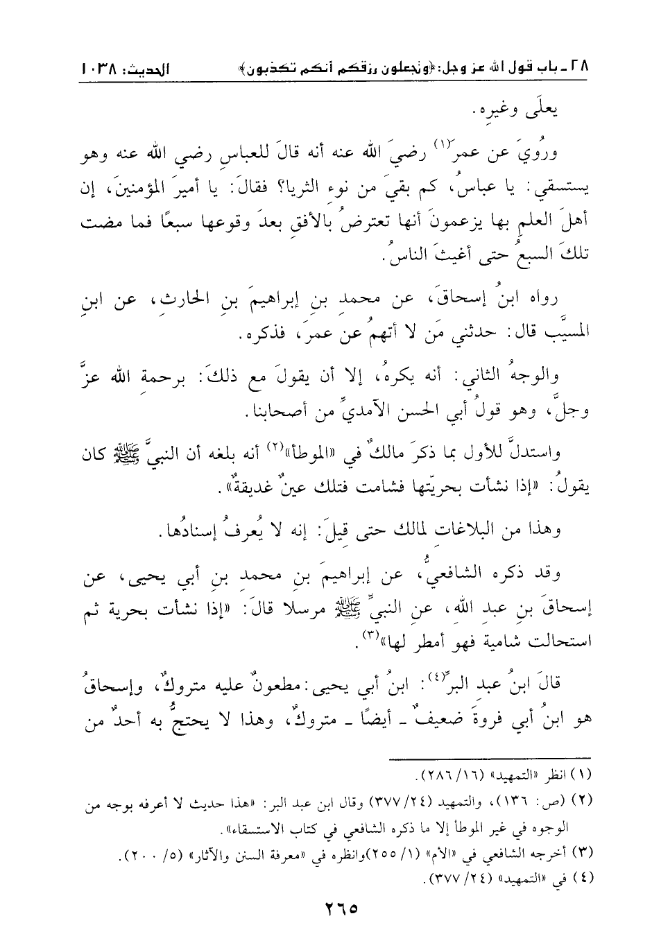 وهو يستسقي: يا عباس، كم بقي من