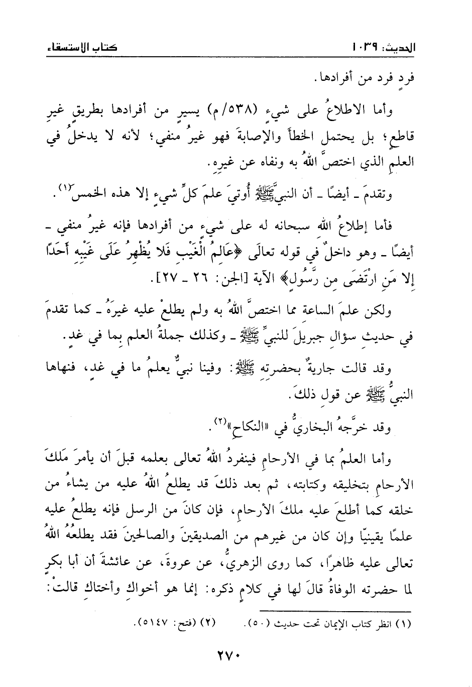 حديث سؤال جبريل للنبي [- صَلَّى اللهُ عَلَيْهِ وَسَلَّمَ -] ، وكذلك جملة العلم بما في غد.
