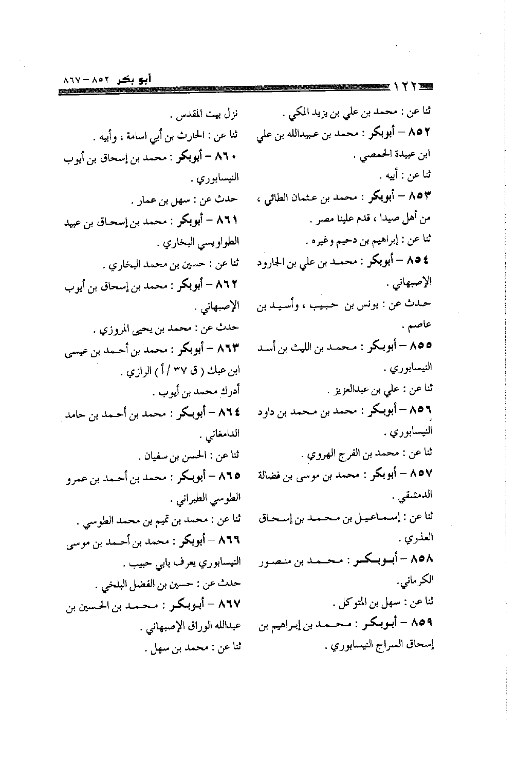 855 - أَبُو بكر: مُحَمَّد بن اللَّيْث بن أَسد