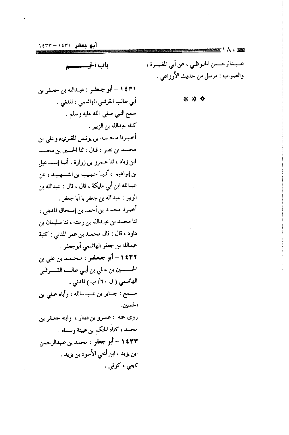 1431 - أَبُو جَعْفَر: عبد الله بن جَعْفَر بن