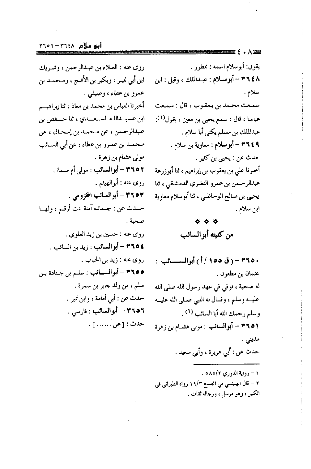 3651 - أَبُو السَّائِب: مولى هِشَام بن زهرَة