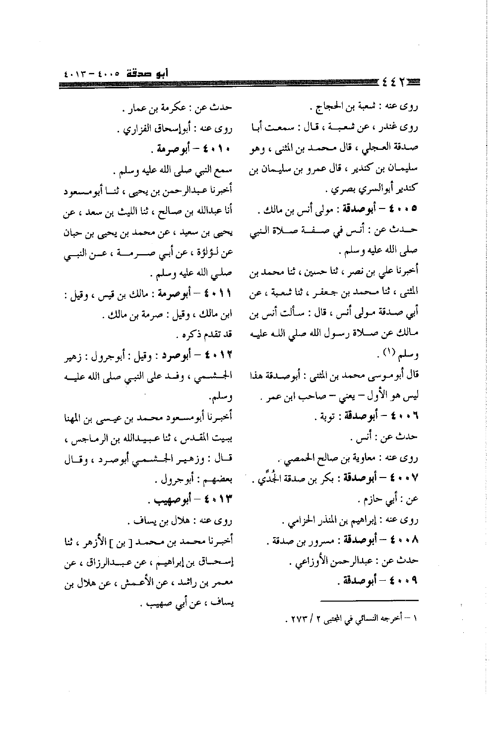 4008 - أَبُو صَدَقَة: مسرور بن صَدَقَة.